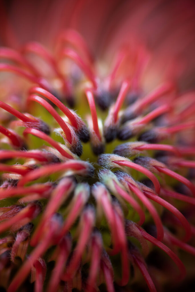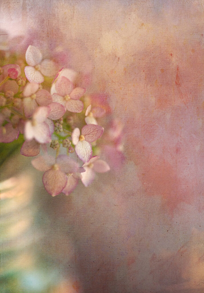 Initially it involves getting as close as I can to a subject and evoking the most detail possible, followed by simple edits. Exploration is important to my process, whether through travel or finding a new model. A new botanical garden, field of flowers, specific flower or improving a past opportunity is what’s top of mind. Oftentimes my “backyard studio” setup works for uncovering a new subject. It’s a great excuse for me and my husband to get out. From there I cull the best captures and determine which pieces move forward to editing. If the piece has all the elements I’m after – deep interior detail, a point of view and a soft blurred background or bokeh – simple edits like shadow and highlights are used. Other times, I let the piece marinate, use masking and further my editing in Photoshop building compositions with backgrounds of bricks or mold, or some other elements I’ve shot over the past 20 years. Recently I’ve been revisiting older pieces that were well defined and adding some artistry. Next to my printer and 99% of the time the piece is ready to be matted and framed for a festival or exhibit. There’s that one percent that really don’t speak once they’re on paper.