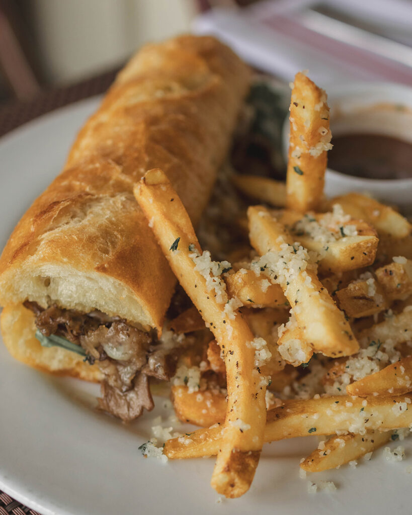 A golden baguette, rich au jus, and a quiet patio brunch demonstrate the balance of tradition and transition at a downtown institution.