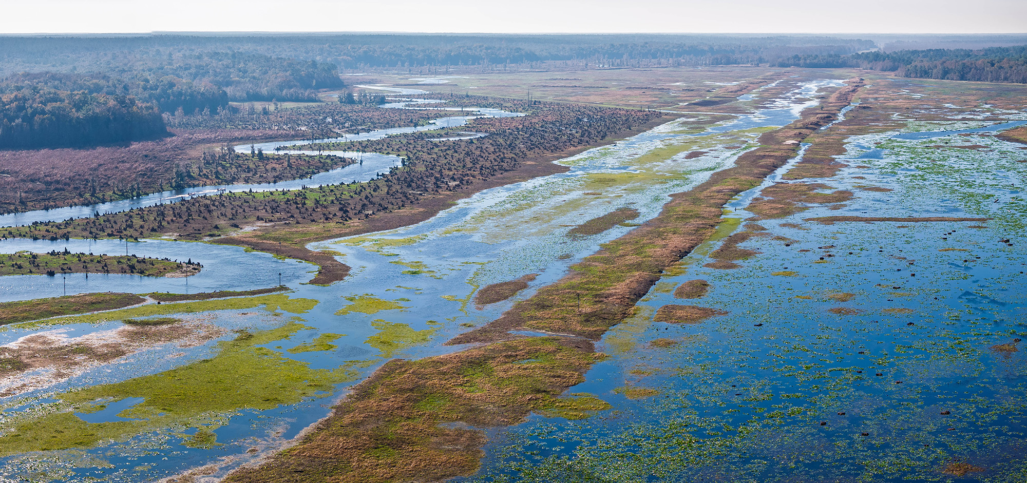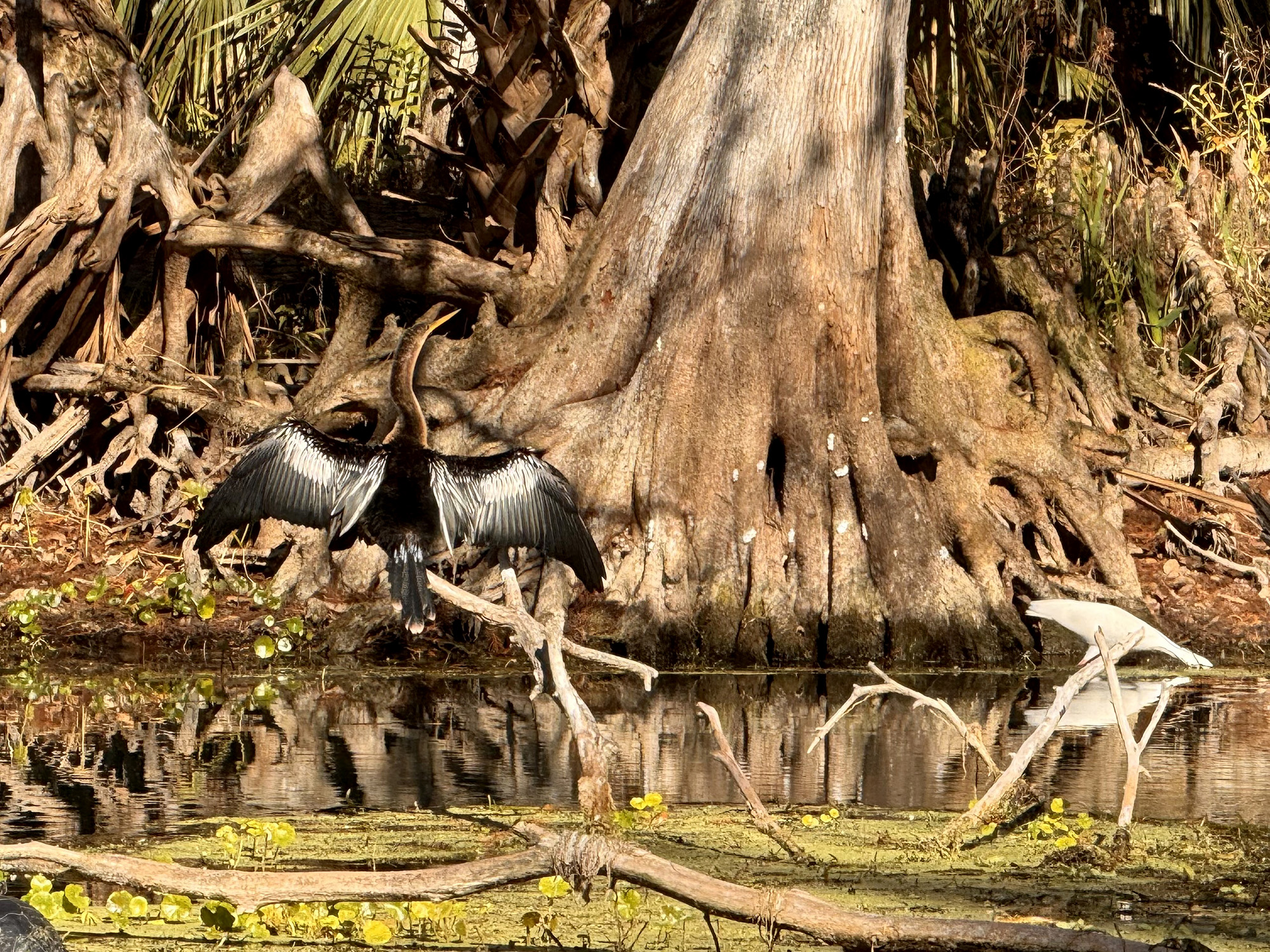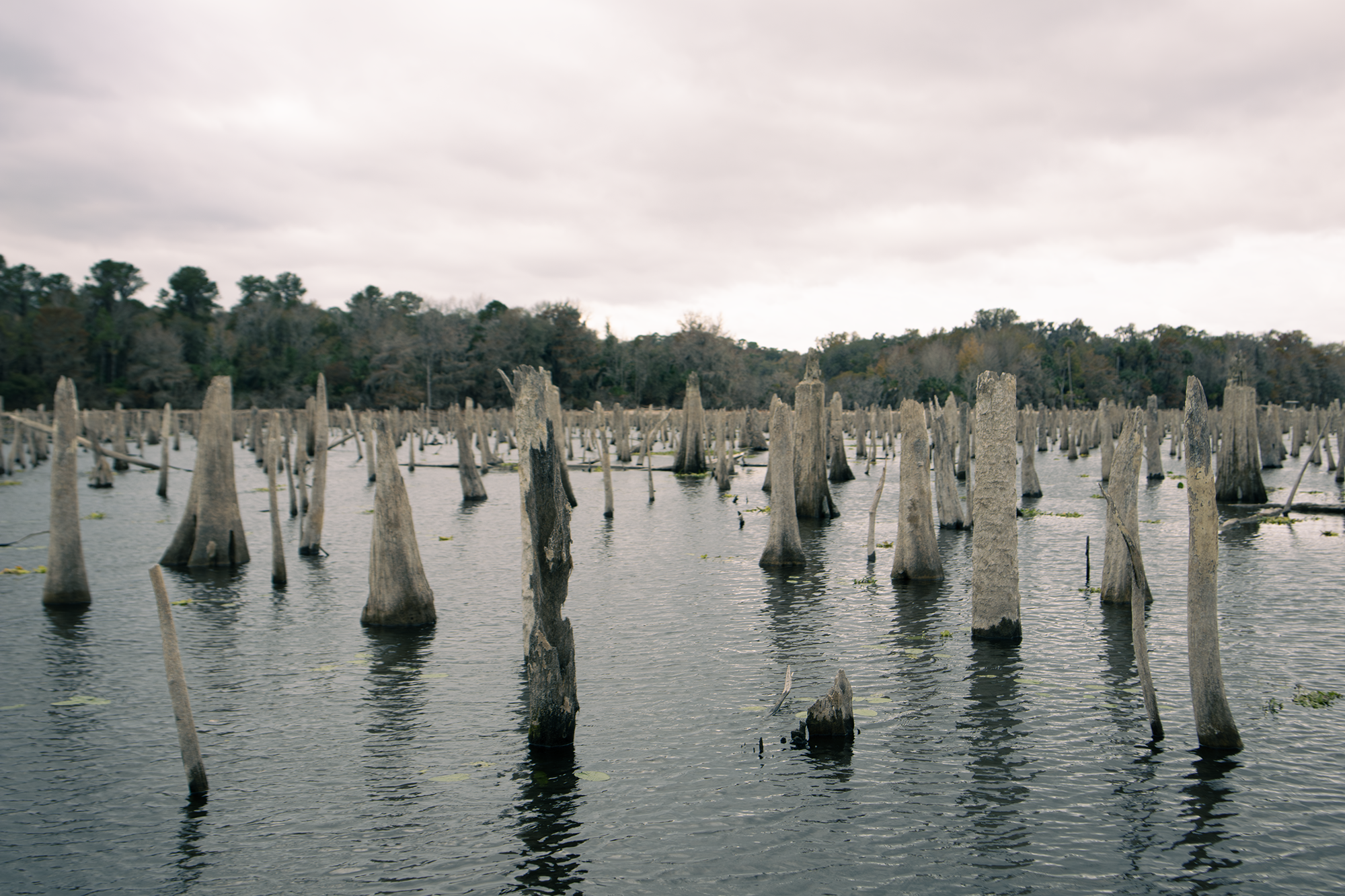 The Rodman is currently on what is known as a “drawdown,” something the Florida Department of Environmental Protection undertakes every three to five years to eradicate invasive vegetation. The reservoir is lowered between 8 and 20 feet, exposing the natural course of the Ocklawaha and thousands of tree stumps from the flooded forestlands. What also is exposed is large numbers of wildlife like bears and deer that forage the uncovered land, which is already showing new tree sprouts.
