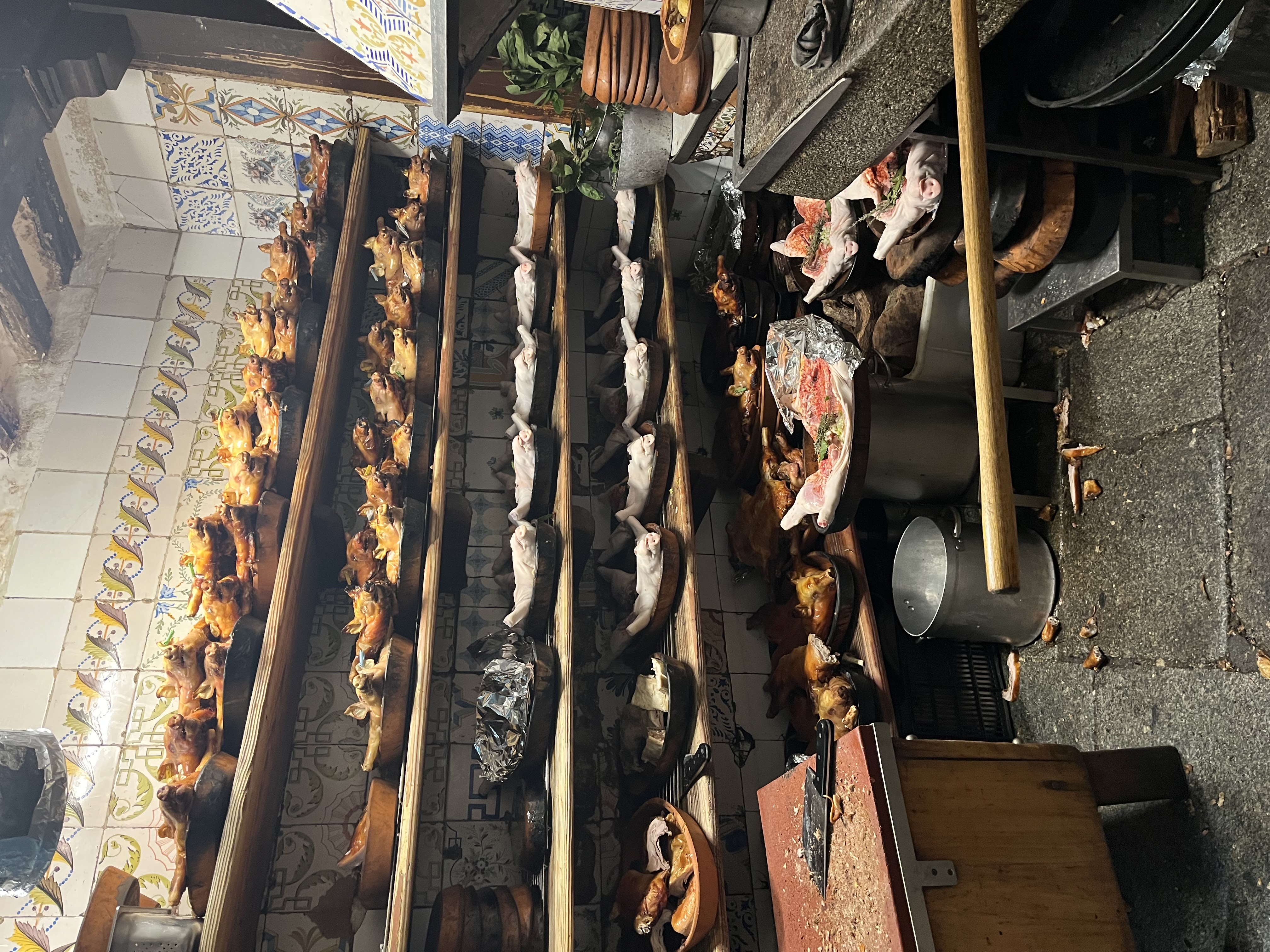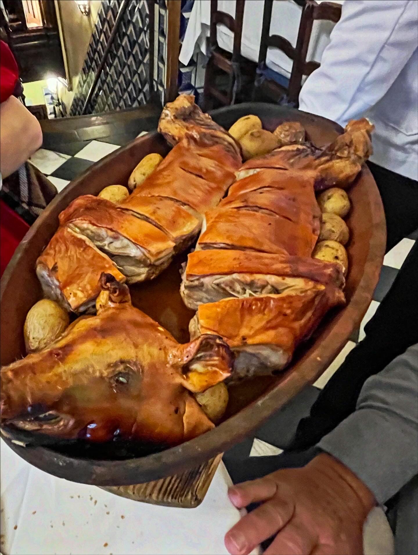 I was fortunate to share this experience with 10 friends from Ocala bridging the familiar with the exotic. We relished a feast of amazing Spanish cuisine. One of their specialties is the roasted whole piggy and the roasted lamb. “Sabroso! Para chuparse los dedos!” (Delicious finger, licking good). I will write this meal in my top three of my lifetime! Buen provecho!