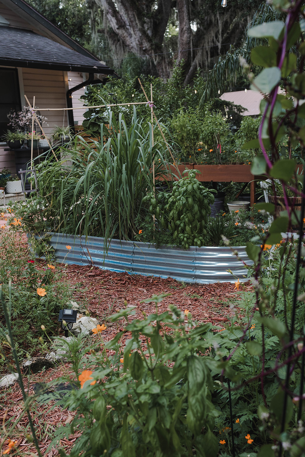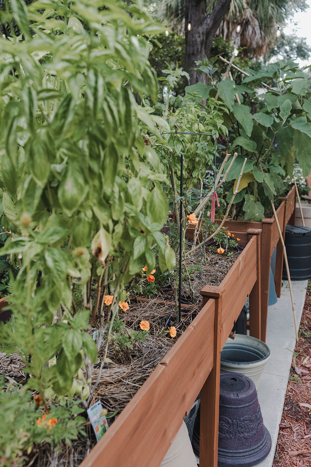 Early herbs and blooms attract bees and butterflies.